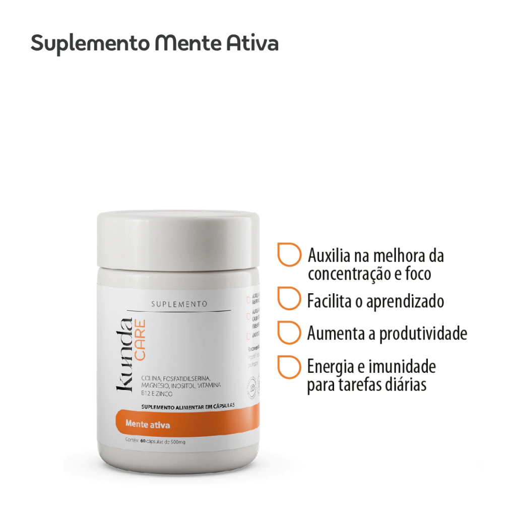 . Suplemento Mente Ativa – Esse aqui é meu aliado nos dias corridos! Me ajuda a manter o foco, a concentração e ainda dá aquela energia suave, sem me deixar agitada. Perfeito pra quem precisa render no trabalho ou nos estudos, sabe?